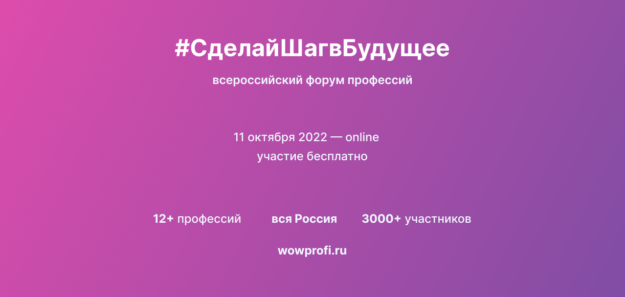 Всероссийский форум профессий #СделайШагвБудущее – мероприятие, которое собирает на одной площадке школьников, студентов, их родителей и педагогов.